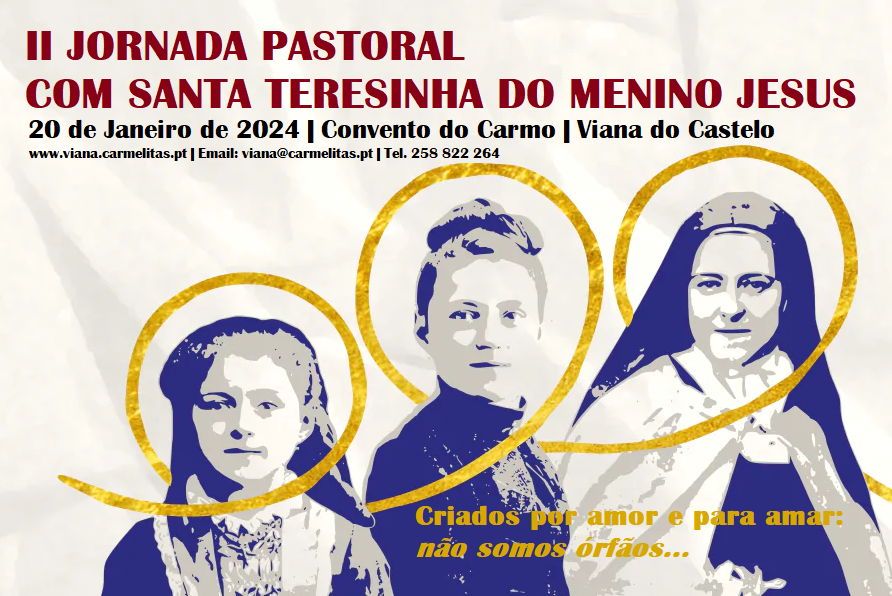 Neste sentido, os Carmelitas Descalços de VIANA DO CASTELO vão realizar uma II JORNADA PASTORAL DE ESPIRITUALIDADE COM SANTA TERESINHA DO MENINO JESUS, no dia 20 de Janeiro, das 9h00 às 16h00.