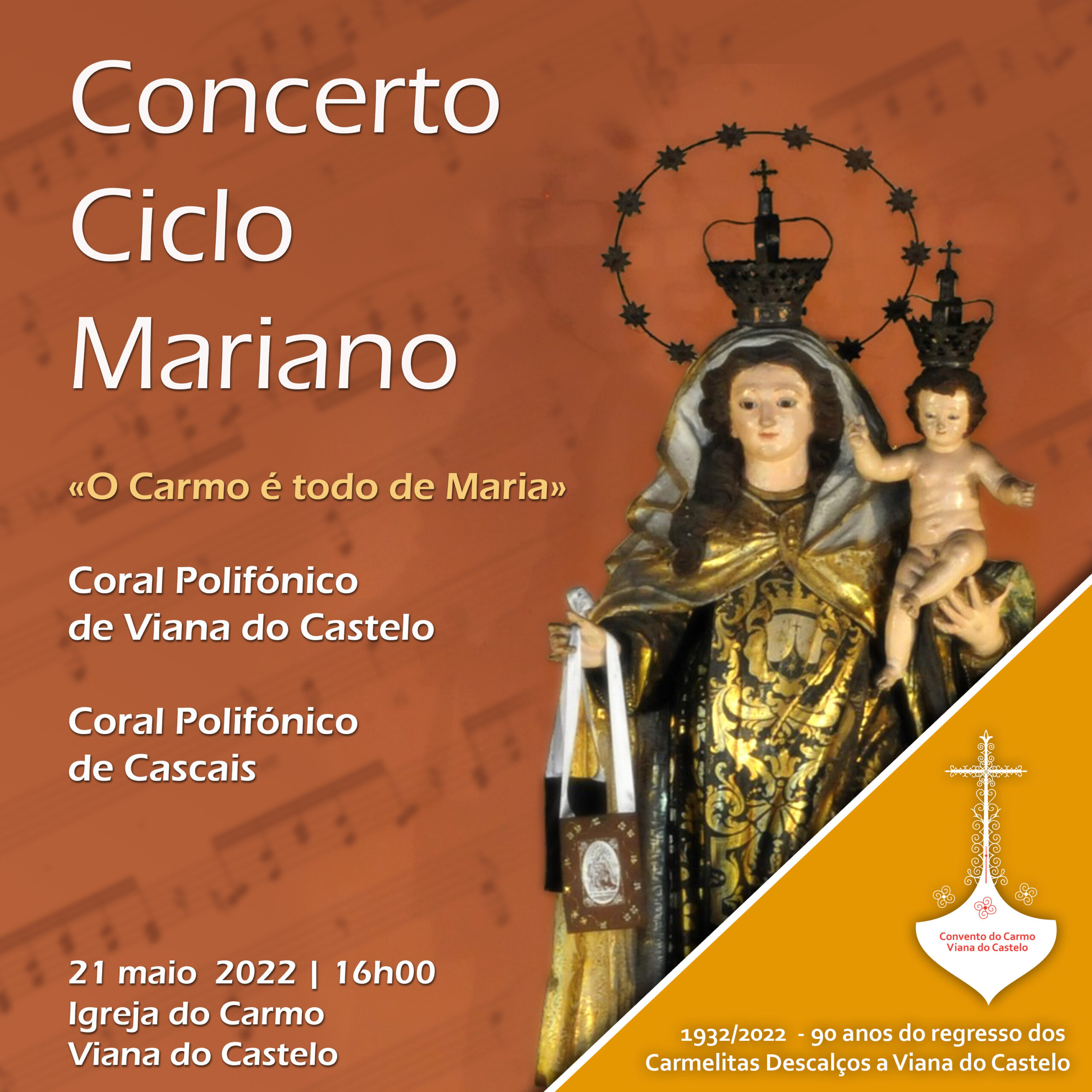 A devoção à Senhora do Carmo e ao seu Escapulário acontece em qualquer altura do ano, mesmo que não se aproxime umas das festas de Nossa Senhora. Este ano celebramos 90 anos do regresso dos filhos da Senhora do Carmo a Viana do Castelo [1932 |7 de Julho| 2022]. Para renovarmos os nossos sentimentos de amor a Maria, pois a Senhora do Carmo atende solicita as nossas súplicas e alcança-nos as graças necessárias e convenientes, quer espirituais ou temporais, organizamos um Concerto Mariano, em honra da Mãe.
